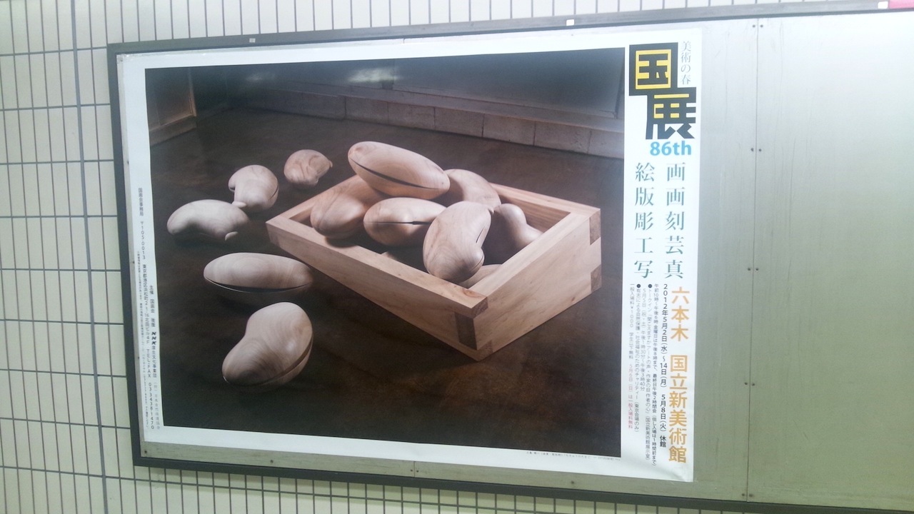 写真は仕事の都合で頻繁に通っている東京メトロ『乃木坂』駅の通路のポスターである。ポスターの写真は豆の木彫刻(前衛的な)