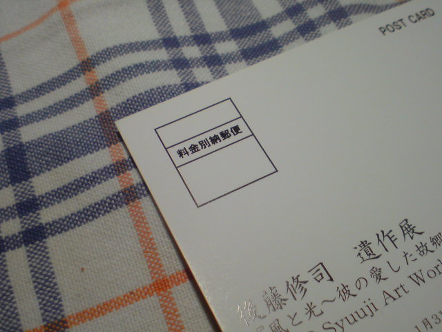 過日宛名印字しておいた展覧会のポストカードを郵便局へ持ち込んだ。「料金別納郵便」として一括発送をお願いする為にだ。まもなくみなさまのお手元にも届く予定です。