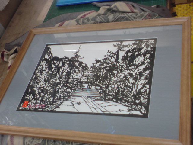 私自身、マットに関しては作品を額へ入れるまで全くその存在すら知らなかったのであるが、作品を額へ仮に収めるにあたり、美術関連に詳しい姉にその存在を知らせれたのであった。今回、彼女は、同行できなかったがその概要に関しては電話でヒアリングしておいたので概ねの流れは理解していたつもりであったが、作品や額の色、テイストやサイズなどによりひとつひとつ微妙に違い、マットの素材や色、作品を表示するエリアの小窓の切り出し方までそれなりに専門的なノウハウが必要なのだ。