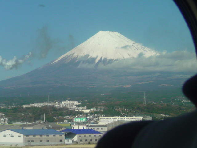 新幹線車内にはたくさんの外国人客の姿もあった。途中、三島から新富士間で晴天の中に雪化粧したフォトジェニックな富士山を車窓越しにみかけた。柄にも無くパチリと写真を撮った。
